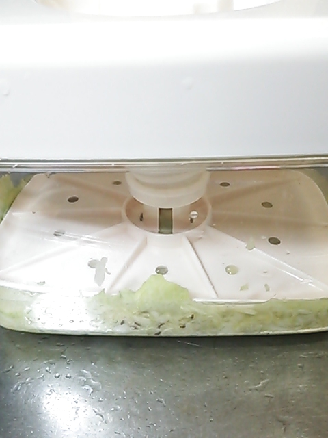 ザワークラウト自体は漬物なので、漬物器に入れる。